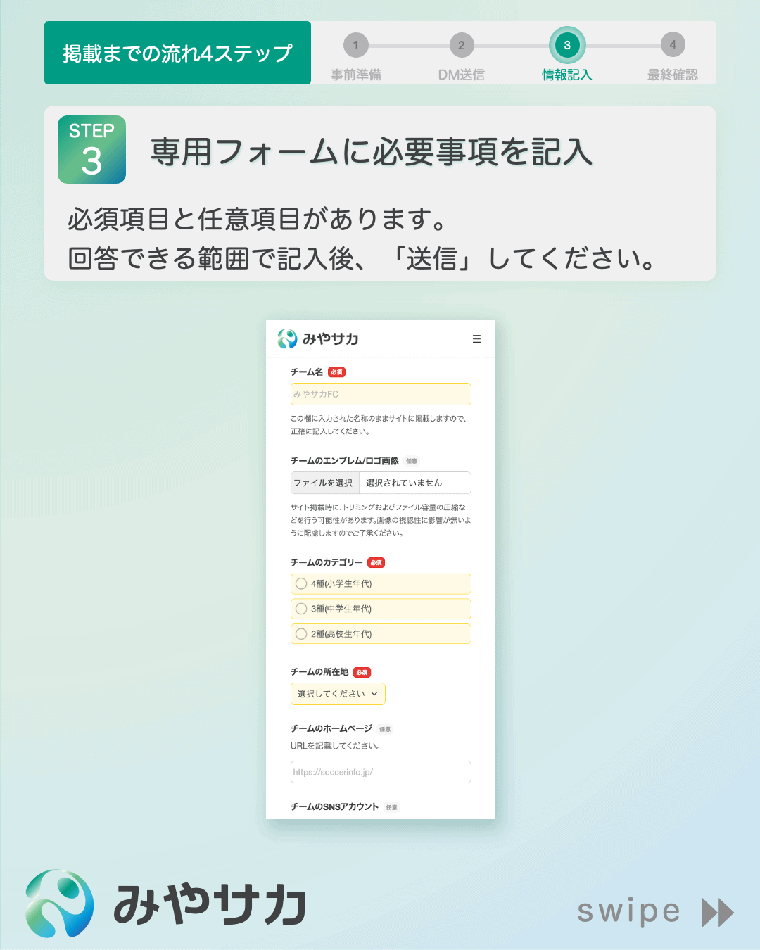 当サイトに掲載するチーム情報は、チームの責任者もしくは責任者の許可を得た方からご提供いただいた内容に限定しているため、正確な情報を伝えることができます。